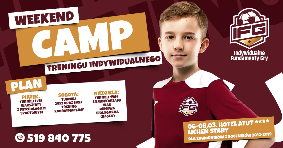 Już w marcu rusza kolejna edycja IFG Weekend Camp - obozu treningu indywidualnego. To niepowtarzalna okazja, aby podnieść indywidualne umiejętności na jeszcze wyższy poziom. Plan obozu jest starannie opracowany, aby maksymalnie skupić się na rozwoju każdego zawodnika.